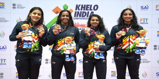 25m रैपिड फायर पिस्टल टीम: गोल्ड – पंजाब यूनिवर्सिटी 1696; सिल्वर – केएलईएफ यूनिवर्सिटी गुंटूर 1668; चंडीगढ़ यूनिवर्सिटी 1658