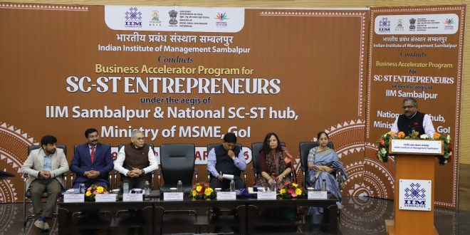 संबलपुरआईआईएम संबलपुर, भारत के प्रमुख प्रबंधन संस्थानों में से एक, ने 19से 24 जनवरी, 2026 तक नेशनल एससी-एसटी हब, एमएसएमई मंत्रालय, भारत सरकार के सहयोग से एससी-एसटी उद्यमियों के लिए दिवसीय बिजनेस एक्सेलेरेटर कार्यक्रम का आयोजन किया।इस कार्यक्रम का उद्देश्य उद्यमिता पारिस्थितिकी तंत्र को सशक्त बनाना है, जिसके अंतर्गत एससी-एसटी उद्यमियों को आवश्यक व्यावसायिकवित्तीय एवं डिजिटल कौशल प्रदान कर उनकी क्षमता का निर्माण और उन्नयन किया गया। यह पहल विकसित भारत 2047 की परिकल्पना और संयुक्त राष्ट्र के सतत विकास लक्ष्यों के अनुरूप है।