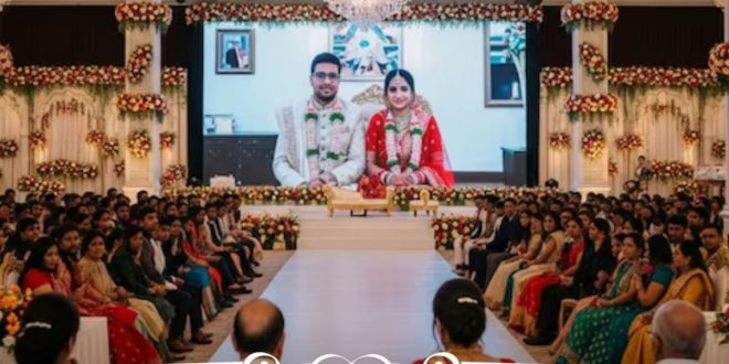 New Delhi. कर्नाटक के हुब्बाली में एक ऐसा रिसेप्शन देखने को मिला, जिसकी किसी ने कल्पना भी नहीं की थी। स्टेज पूरी तरह सजा हुआ था, 600 से ज्यादा मेहमान मौजूद थे, लेकिन दूल्हा-दुल्हन खुद वहां मौजूद नहीं थे। मेहमानों को रिसेप्शन में कपल से मिलने के बजाय मोबाइल स्क्रीन पर ही उनके दर्शन हुए।