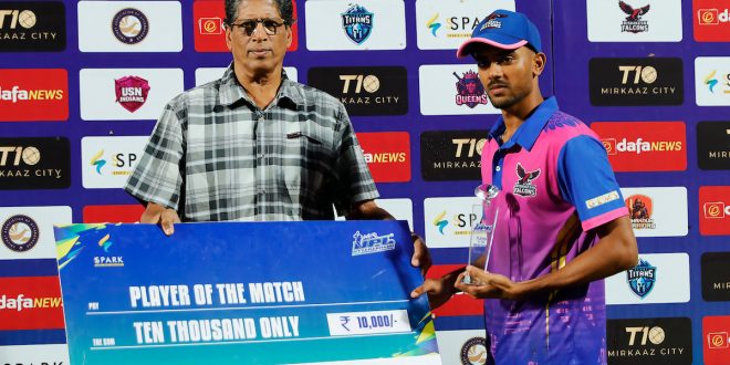 पहला विकेट गिरने के बाद नीरज राठौर ने ताबड़तोड़ अंदाज में सिर्फ 11 गेंदों में 23 रन बनाए, जिसमें दो ऊंचे छक्के भी शामिल थे। अंतिम ओवरों में सौरव चौहान ने 17 गेंदों पर 30 रन की तेज पारी खेलकर स्कोर को रफ्तार दी। फाल्कन्स के जगमोहन नागरकोटी ने 47 रन देकर तीन विकेट लिए।