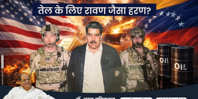 Jaipur. वैश्विक राजनीति में एक नया, बेहद विवादास्पद तथा इतिहास बनाने वाला अध्याय जुड़ गया है। 3 जनवरी 2026 की रात अमेरिका ने दक्षिण अमेरिकी देश वेनेज़ुएला की राजधानी कराकास पर बड़े पैमाने पर सैन्य हमला किया और मात्र आधे घंटे के भीतर वेनेज़ुएला के राष्ट्रपति निकोलस मादुरो तथा उनकी पत्नी सिलिया फ्लोरेस को गिरफ़्तार कर लिया। इस ऑपरेशन ने दुनिया भर में तीखी, गहन तथा बहुआयामी बहस छेड़ दी है। एक तरफ इसे तानाशाही के खिलाफ न्याय की जीत, दमनकारी शासन के अंत तथा लोकतंत्र बहाली की दिशा में निर्णायक कदम बताया जा रहा है, तो दूसरी तरफ इसे अंतरराष्ट्रीय कानून का स्पष्ट उल्लंघन, संप्रभुता पर हमला तथा साम्राज्यवादी हस्तक्षेप माना जा रहा है।