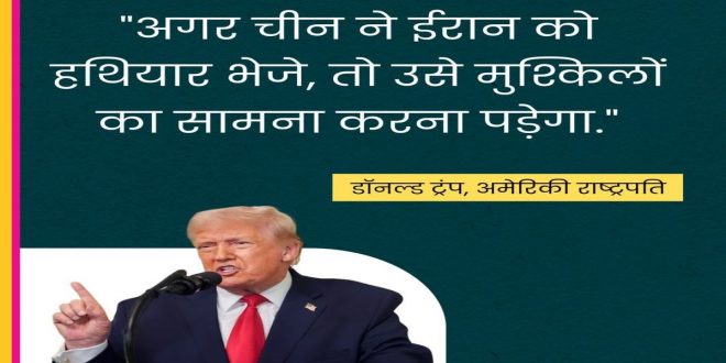 Home / राजकाज / चीन को ट्रंप की खुली चेतावनी: ईरान को हथियार भेजे तो “बड़ी मुश्किल” तय